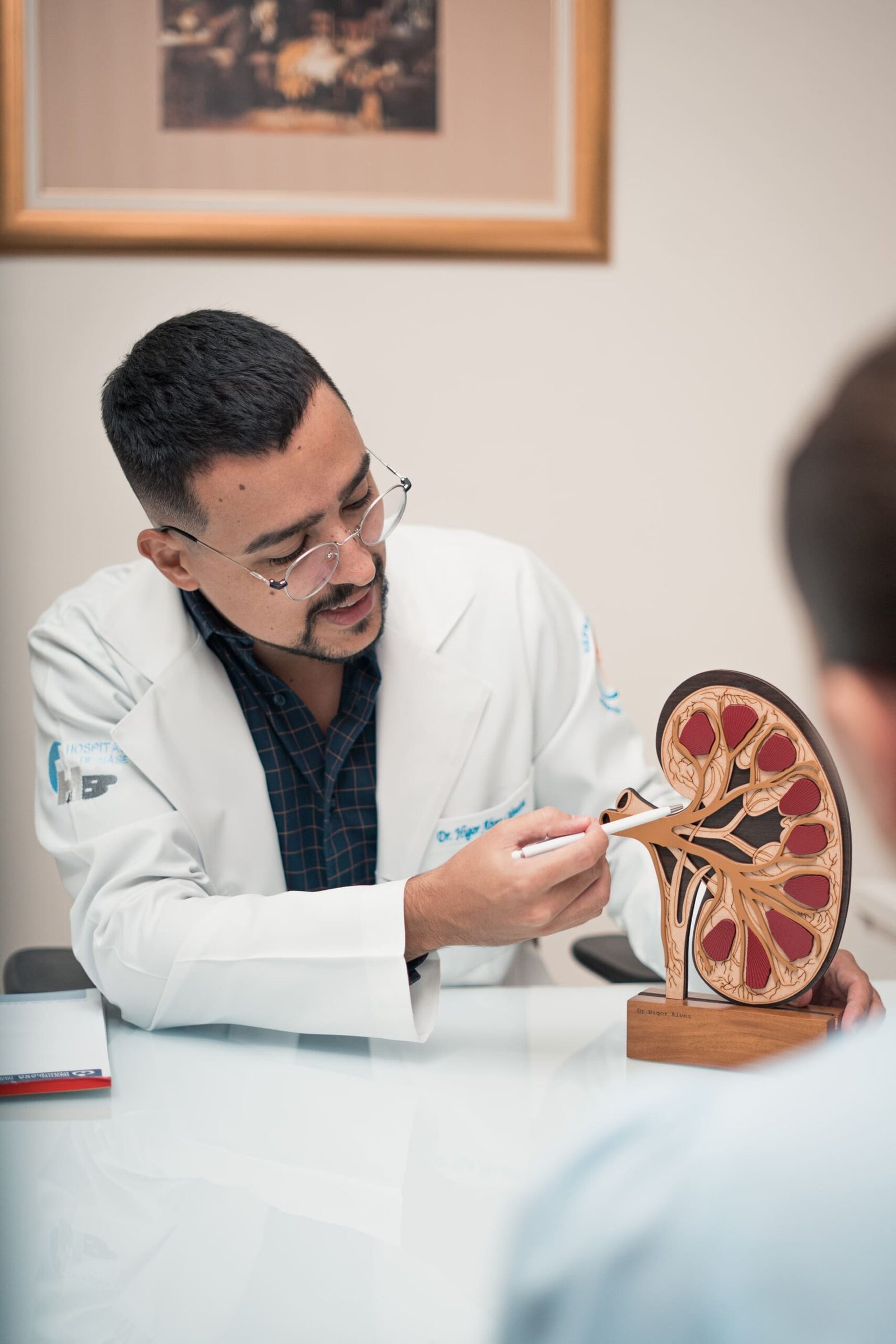 A nefrolitíase é o famoso cálculo renal. Ela pode ser muito dolorosa e, se não tratada corretamente, tende a se repetir. Meu trabalho é investigar o que está por trás da formação dessas pedras, orientar sobre prevenção e tratar cada paciente com atenção às suas particularidades.